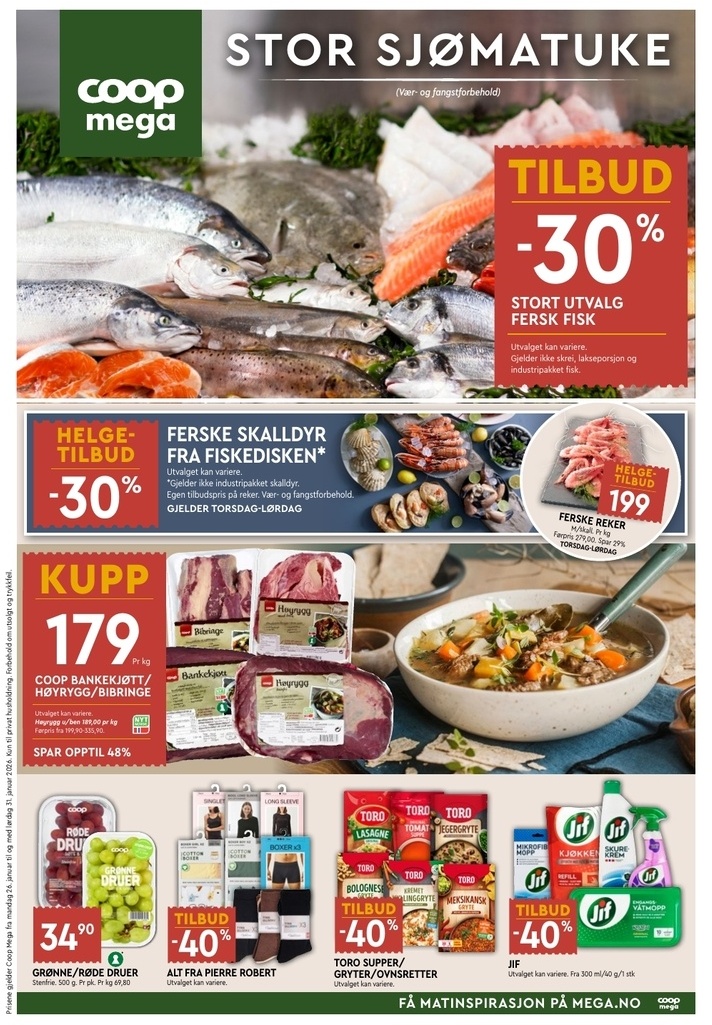 Sjekk ukens tilbud fra Coop Mega. Se kundeavisen fra Coop Mega med mattilbud, kampanjer osv. Jeg har også samlet mine triks for hvordan å utnytte kampanjer og skaffe kuponger o.l.