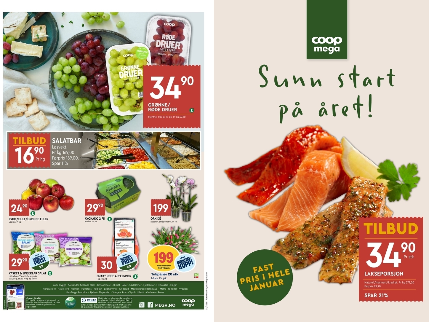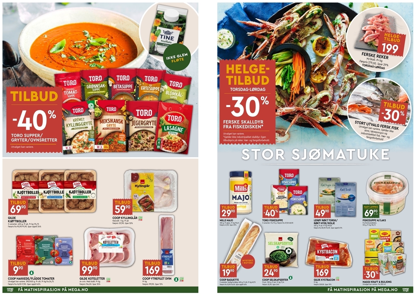 Du kan enkelt få oversikt over hvilke mattilbud Coop Mega har i ukens tilbudsavis / kundeavis ved å se bildene over, eller du kan sammenligne med andre kjeders tilbudsaviser.